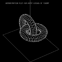 EYE (an input array of type REAL, dimensioned 3) is the position of the eye in the UVW coordinate system. The eye position, at (EYE(1),EYE(2),EYE(3)), must be outside the box containing the data. The point being looked at is at the center of the data box and the projection plane is perpendicular to the line of sight. While gaining experience with the routine, a good choice for EYE is (5.*REAL(MU),3.5*REAL(MV),2.*REAL(MW)).