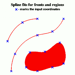 The coordinate values are used as control points for a spline curve fit. The curve passes through the given coordinates. If the front has little curvature, then only a few points need to be specified to get a nice smooth curve. See Figure 2 in Appendix A for an illustration.