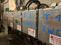 Located in the southeast corner of the LTX test cell (L210/211) behind the Thomson scattering table, the Hoffman boxes contain terminal connections between the Robicon power cables and the LTX field coil leads. Each box is (nominally) labeled with the Robicon power supply with which it is associated, and the coil(s) to which it connects.